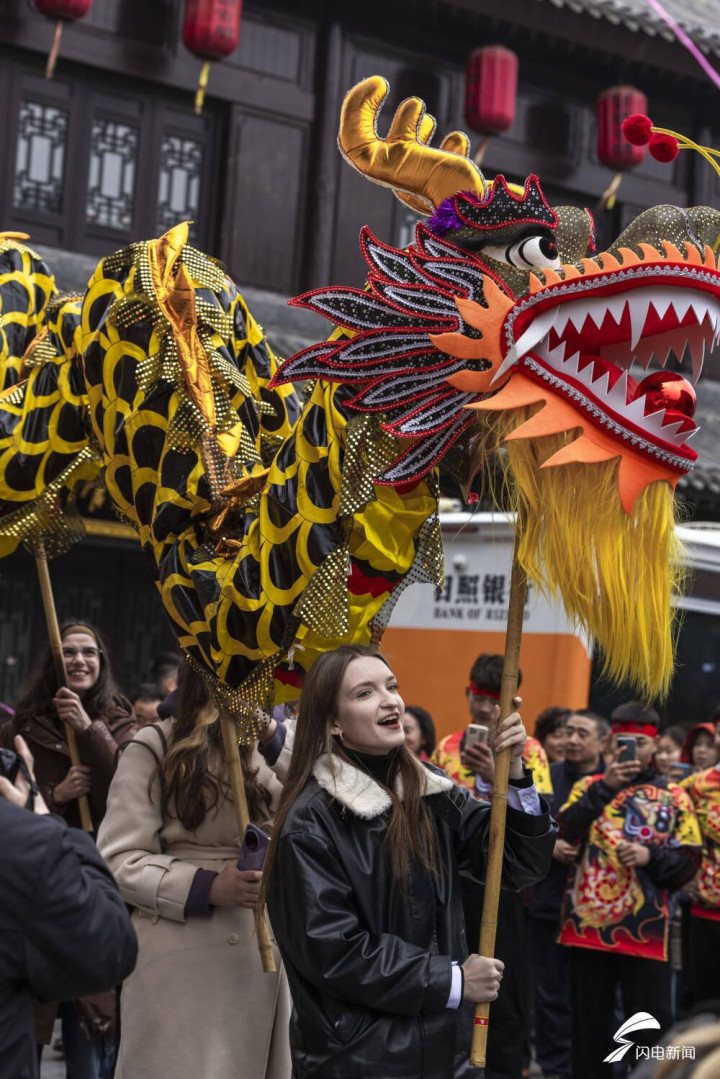 活动现场,莒国古城锣鼓喧天,热闹非凡,彩龙在民间艺人的挥舞下闪转腾挪,似有翻江倒海之势,让在场市民游客赞不绝口,纷纷拿出手机拍照打卡。